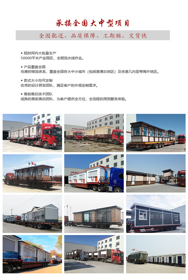 產(chǎn)品類型 大型辦公室、公共設(shè)施房屋、售貨屋、交通檢查、戶外廁所等。